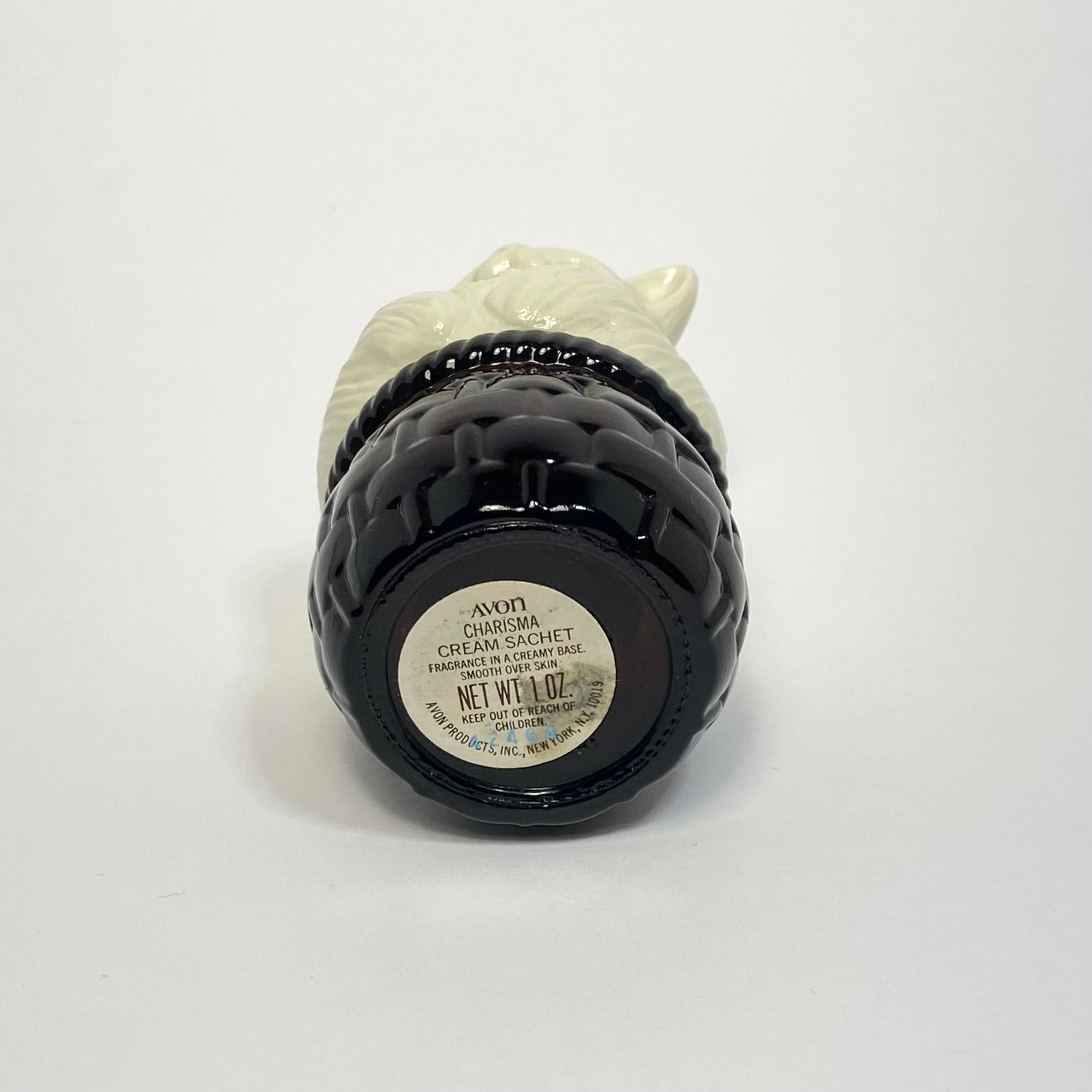 Vintage 1974 Beige Cat in Brown Glass Basket Cream Charisma Perfume Bottle EMPTY