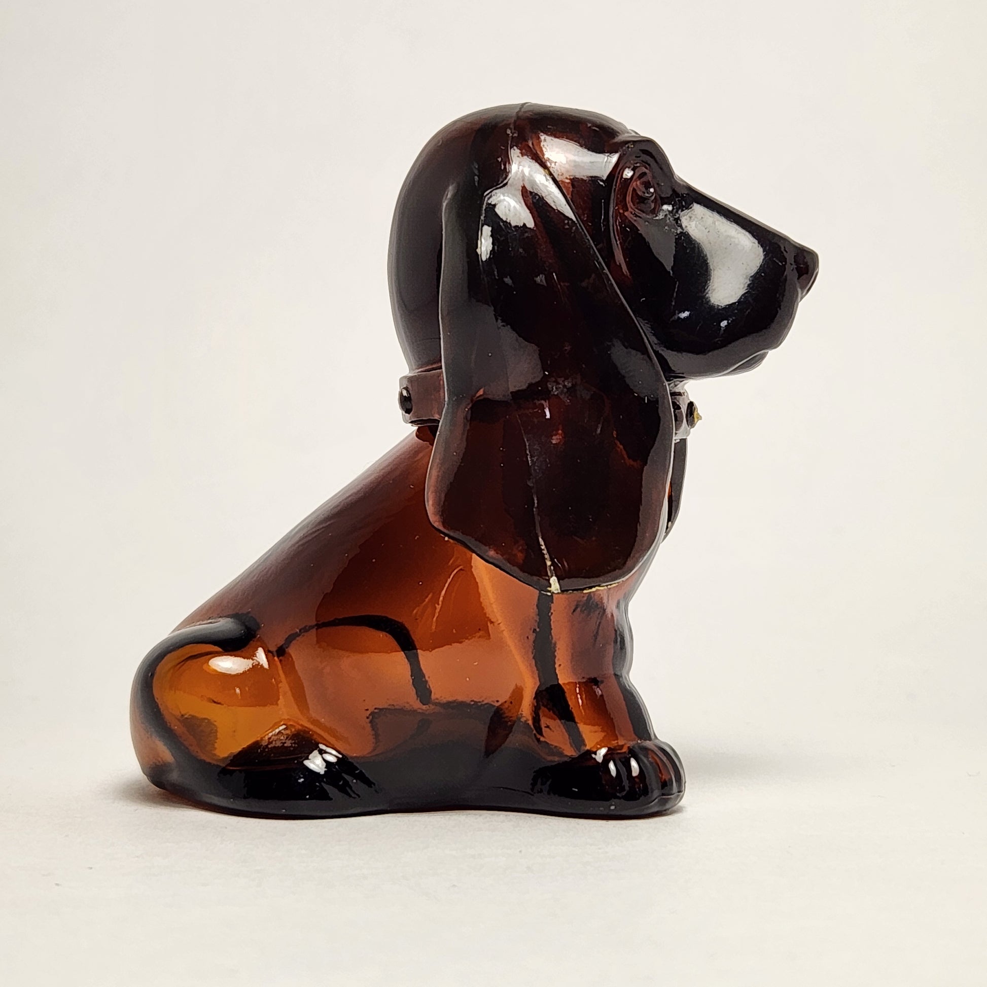Vintage 1970s Brown Glass Basset Hound Cologne Bottle - EMPTY