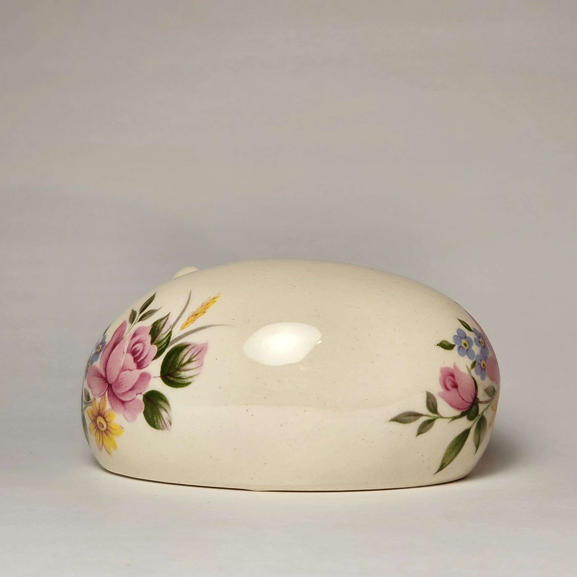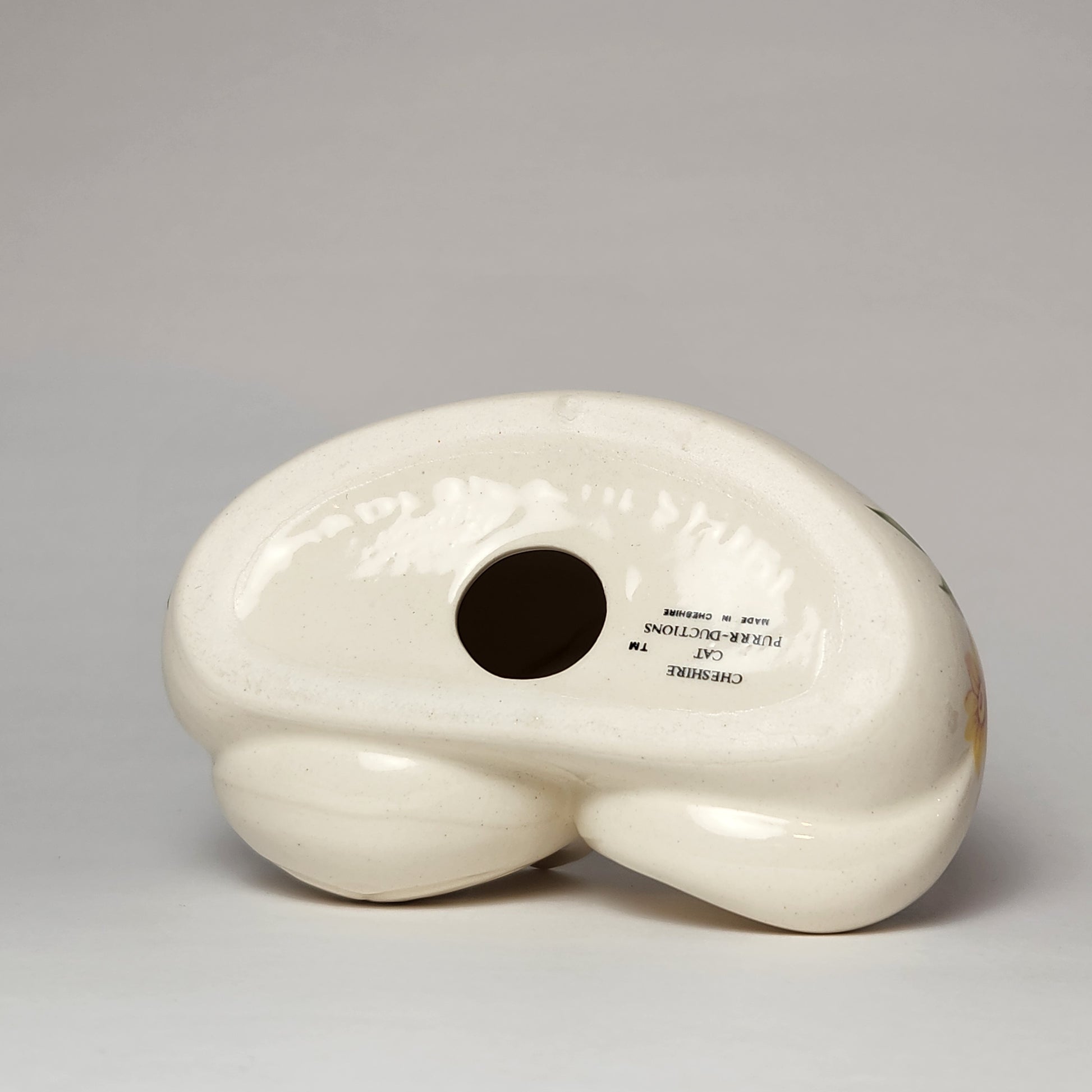 Vintage Porcelain Cheshire Cat Figurine Pink Floral Pattern